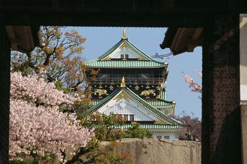 大手門から天守閣を望む隙間にジャンボジェット機が通過するんです。