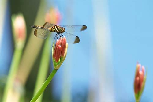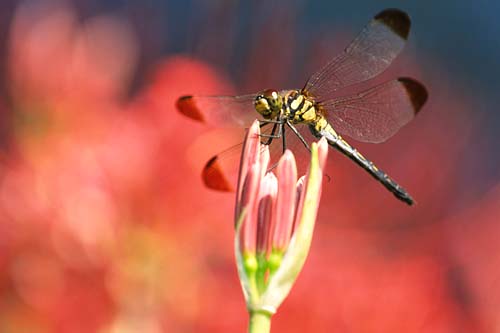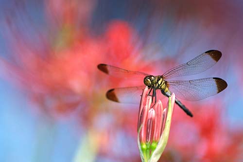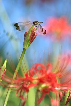 今度は咲いた彼岸花と青空をバックにトンボを配置してみました。