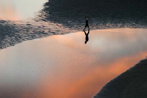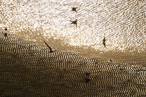綺麗な朝焼けは出ませんでしたが、雲間からオレンジ染まった空が水面に写り込んで、