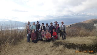 朝食後、山登りの準備をしてバスに乗り込み、山中湖湖畔の平尾山登山口へいきました。準備運動をしていよいよ山登りを開始、しばらく登ったところですっかり体が温まりました。そこでベストはナップザックにしまい、ジャンバーは腰に巻いて登りました。標高差300mほどでしたがすっかり汗をかきました。それでも吸水速乾性の下着を着ていたため、頂上ですぐにジャンバーを着ておくと寒くなりませんでした。集合写真を撮り、休憩をした後大平山へ尾根伝いに行きました。といってもかなり下ま丸太の階段を下り、再び階段を上るので大変でした。丸太の階段を下るとき、初めはかに歩きのように体を横にし、一段一段下っていました。そのとき先達から、丸太を土踏まずの前方で踏んで下ると楽だと教えてもらいました。試してみるととても楽に簡単に下れることがわかり、それ以降、このような長い階段がたくさんあり、いつもと違ってとても楽に下ることができました。ただし上り坂の苦手な私は上りの階段を「スーハッハッ」と呼吸を足の動きにあわせてリズムをとりながら、必死でみんなの後をついて登りました。飯盛山を経由し、お昼に無事花の都公園近くにたどり着き、迎えのバスで宿舎に戻りました。