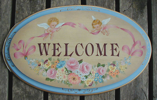 これもその友達から頼まれて描いたものです。アンティークショップの開店祝いだそうです。だからビクトリアン風。私には苦手なスタイルなので大変でした。表面効果で金色のクラッキングを施しました。